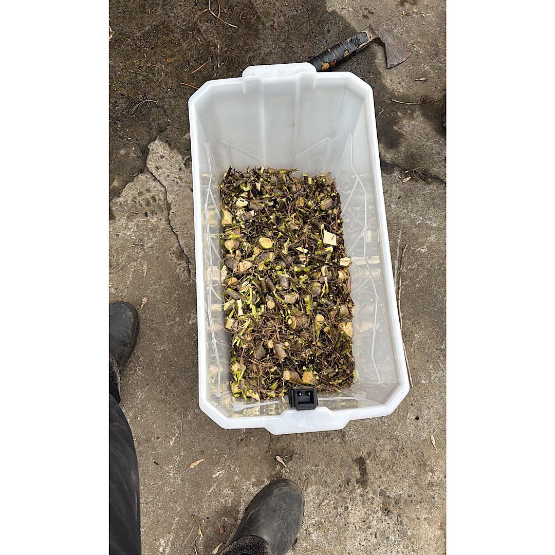 День икс — в две пилы выкосили за день. После — пошло отделение мух от котлет. Чурочки отдельно — на дрова, ветки отдельно — в чудо-машину, которая на раз два перегрызла весь этот объём, не подавившись.