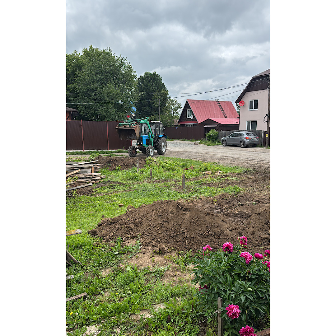 Затраты на планировку, отсыпку, выкорчёвку — 50 тысяч. На секундочку — пни с этого объёма получилось два камаза полных. Что бы понимали объём. Причём его трамбовали плотненько — под моим руководством.
