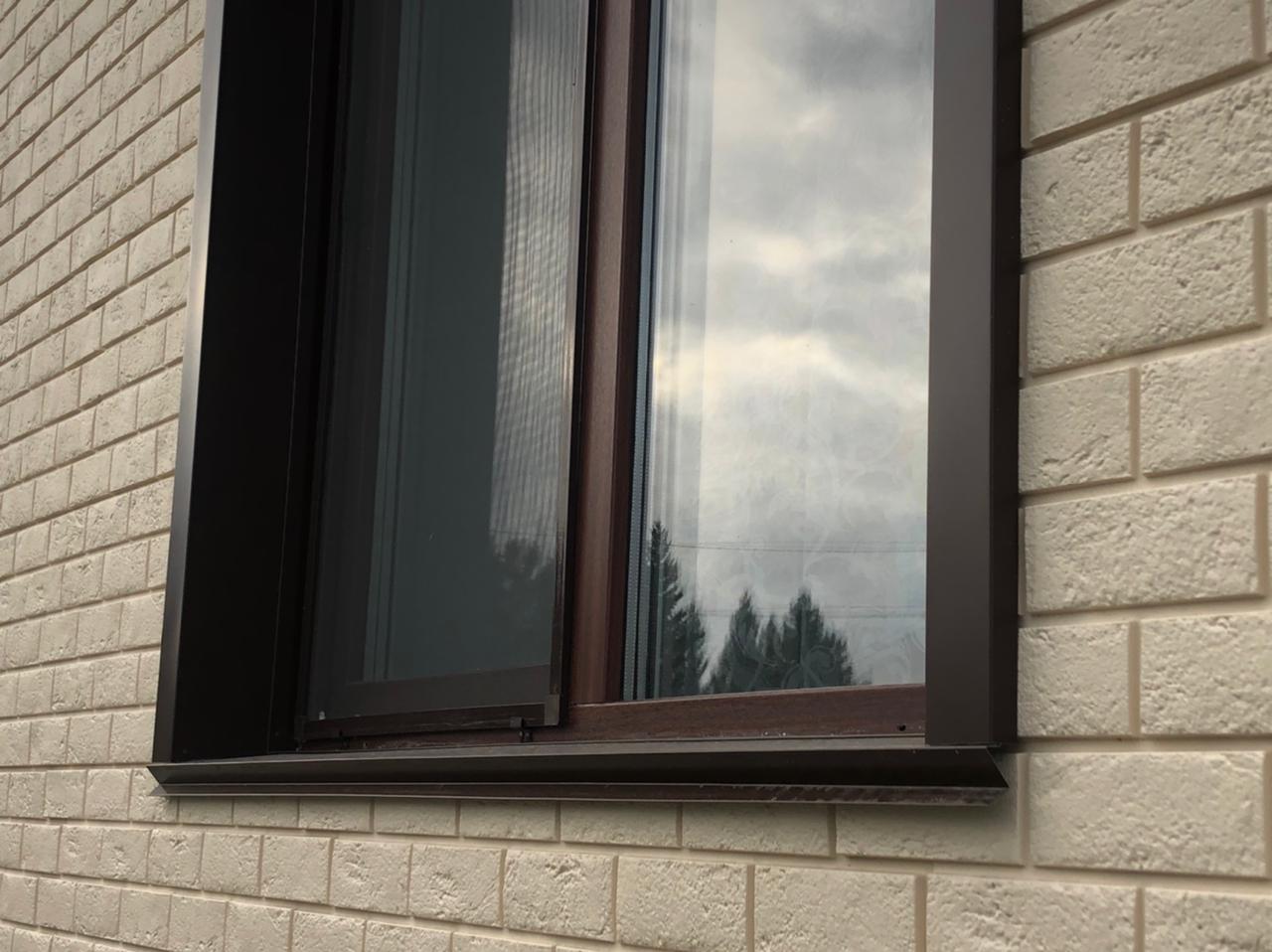 Изначально оконные и дверные проемы тоже задумывались из угловых элементов «под камень». но технически это не реально реализовать. Потому остановились на варианте объемных откосов.