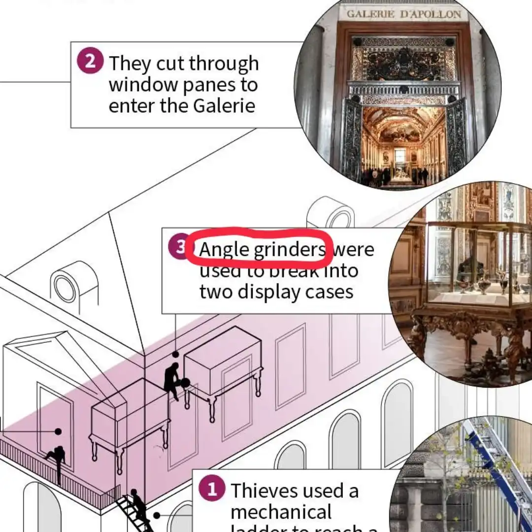 В результате ограбления, описанном в источнике , воры похитили броши, тиары, ожерелья и серьги с тысячами бриллиантов, сапфиров и изумрудов. Преступники проникли в музей через окно, но конкретные инструменты, использованные для взлома, в материалах не указаны.