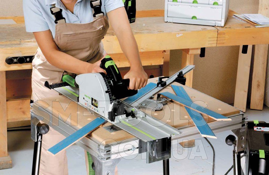 Высокая точность реза обеспечивается использованием наплавляющей шины, которая может поставляться в комплекте (Makita SP 6000 SET) или приобретается отдельно. При этом использование шины исключает необходимость подробной разметки, что существенно упрощает процесс и позволяет экономить рабочее время.