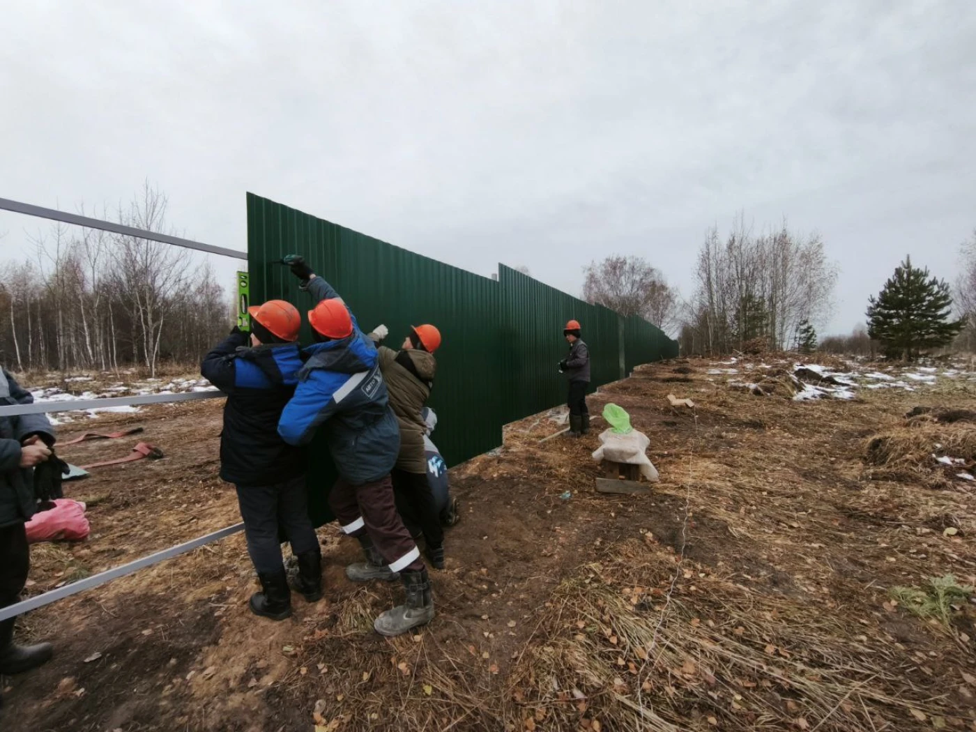 Генеральный подрядчик ООО «Национальная инфраструктура» начал расчистку участка от лесных насаждений, работы по устройству временных площадок хранения и подъездных путей к стройплощадке. Подготовительный период также включает в себя работы по установке ограждения, монтаж временных сетей электроснабжения, водоснабжения и водоотведения, устройство бытового строительного городка