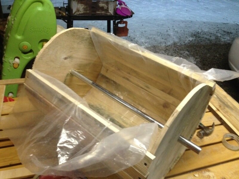 И засыпаем кг 70 песка (скрёбем замерзший из мешка)