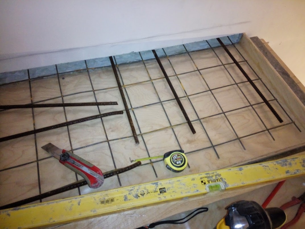 У меня осталось много арматуры разной толщины + сетка от теплого пола. Все уложил на стол