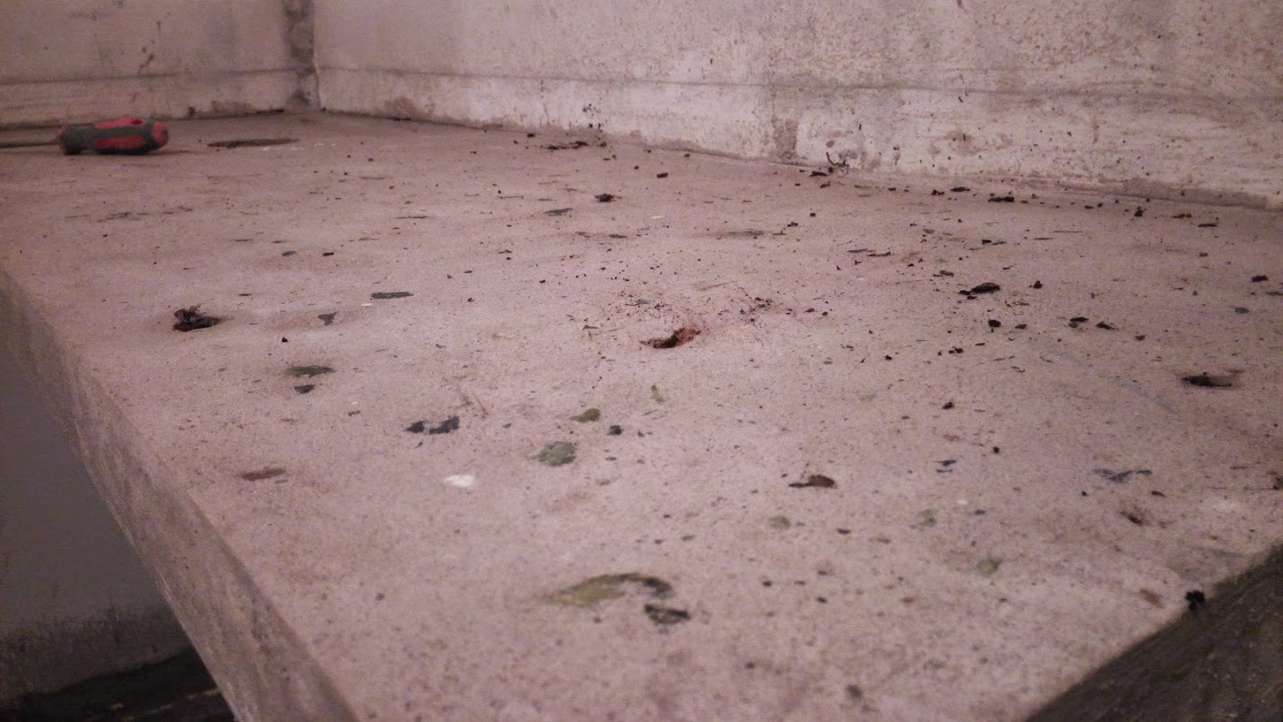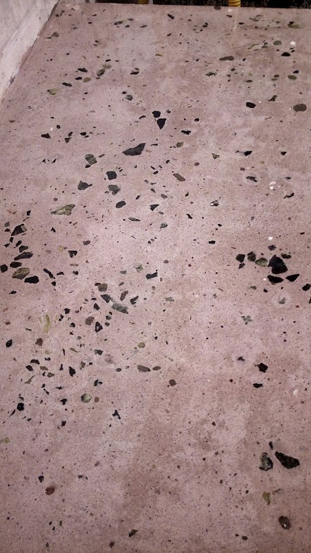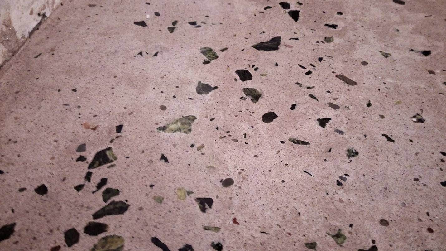 Все щели и стыки прошел силиконовым герметиком, что бы не вытекал бетон. Так же был куплен белый цемент( можно делать из обычно если хотите темнее) .Купил мраморную крошку (змеевик) на самом деле они больше выглядят как щебень 5-20, пришлось большие куски выбирать. Мешал как на бетон марки М200. Использовал вибратор глубинный для того что бы не было пузырьков, ну и конечно в неподходящий момент он сломался, пришлось стучать всем подряд, да бы создать вибрацию , что не особо получилось, поэтому есть небольшие раковины сбоку.