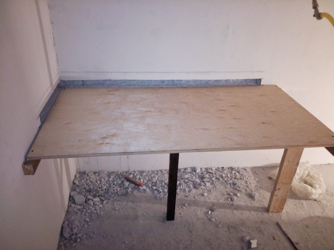 Толщину столешницы выбрал 5см. Сделал штробу в двух стенах глубиной см 7 ( на глаз, но не меньше 5см) ,