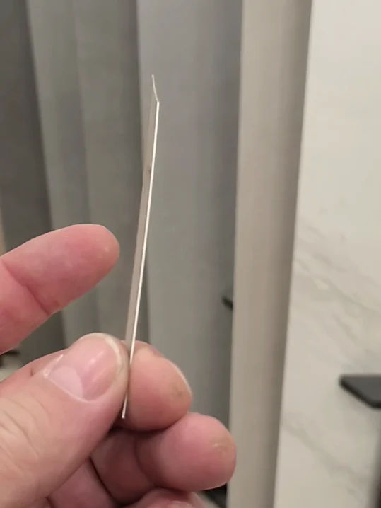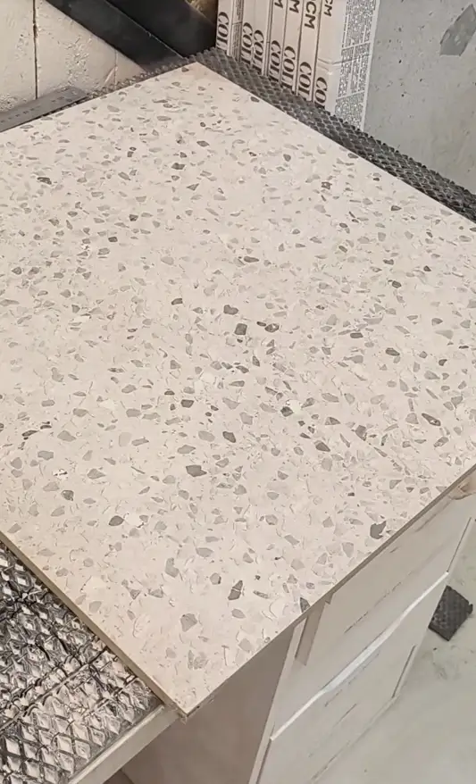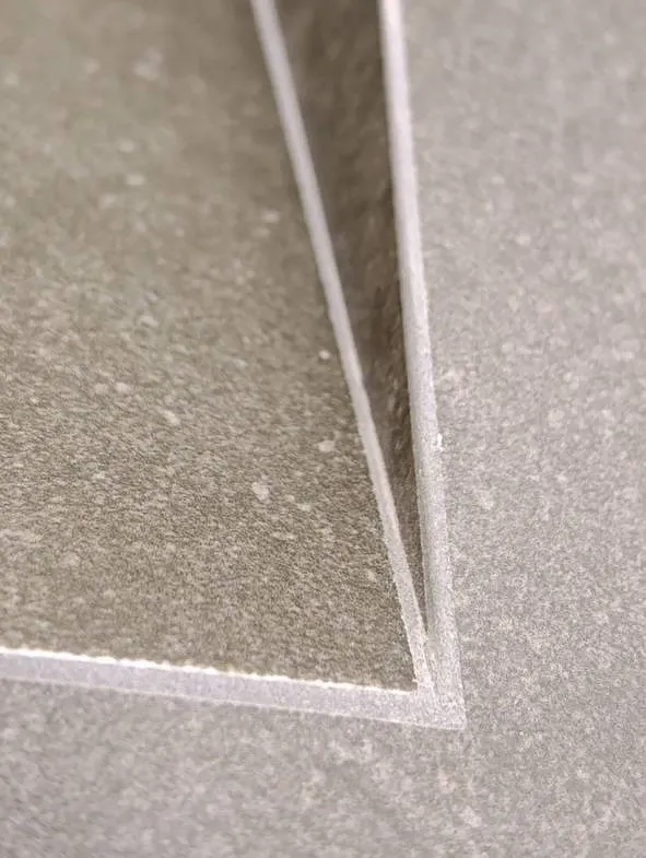 И в конце для любопытных. Что такой современный керамогранит, почему он такой доступный? Вот так он выглядит на срезе — всего 0.3 мм. Предоставляете, а раньше столешницы делали из такого массива, не мудрено что такую цену мог потянуть разве что Стас Михайлов (показывали по тв его стол). Но нет.. теперь керамогранит себе может позволить вполне среднестатистический заказчик.