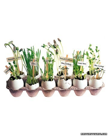 Я нашла оригинальную идею на Pinterest от MarthaStewart.com как выращивать рассаду с помощью яичной скорлупы. Это мини-горшечки, которые вы можете садить прямо в землю, прямо в скорлупе. Очень экологично. Вот как это выглядит: