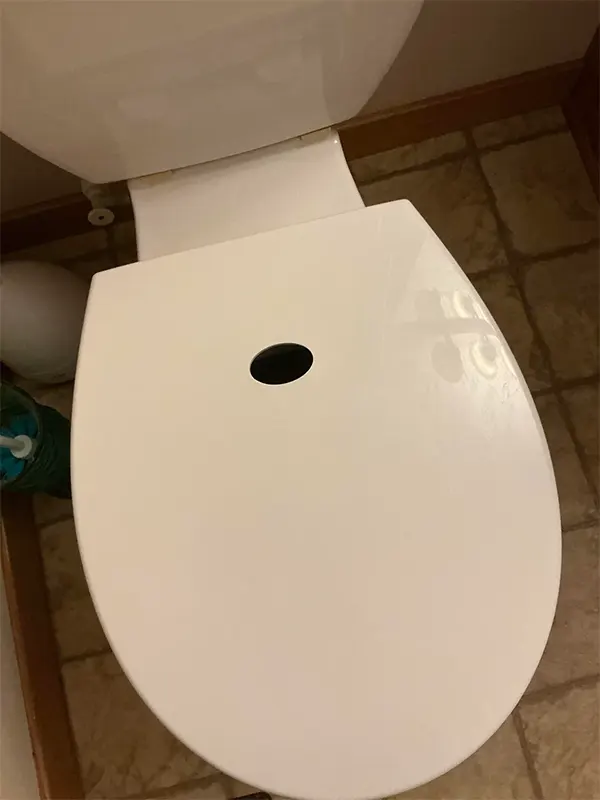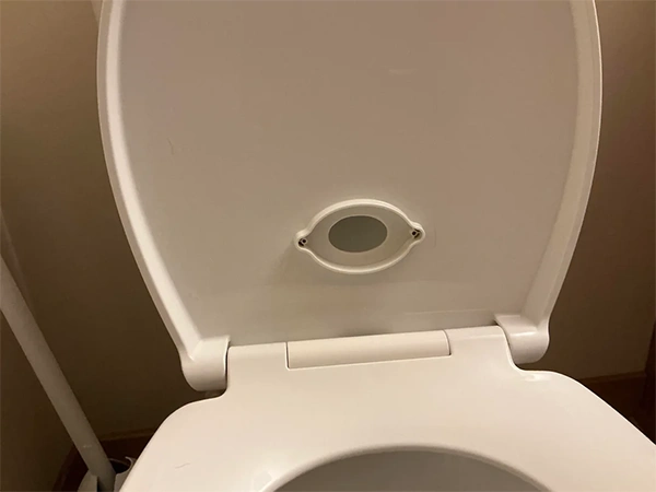 Казалось бы обычная унитазная крышка. Но нет — есть дополнительная фича на крышке. Для чего? Вид сверху и вид снизу.
